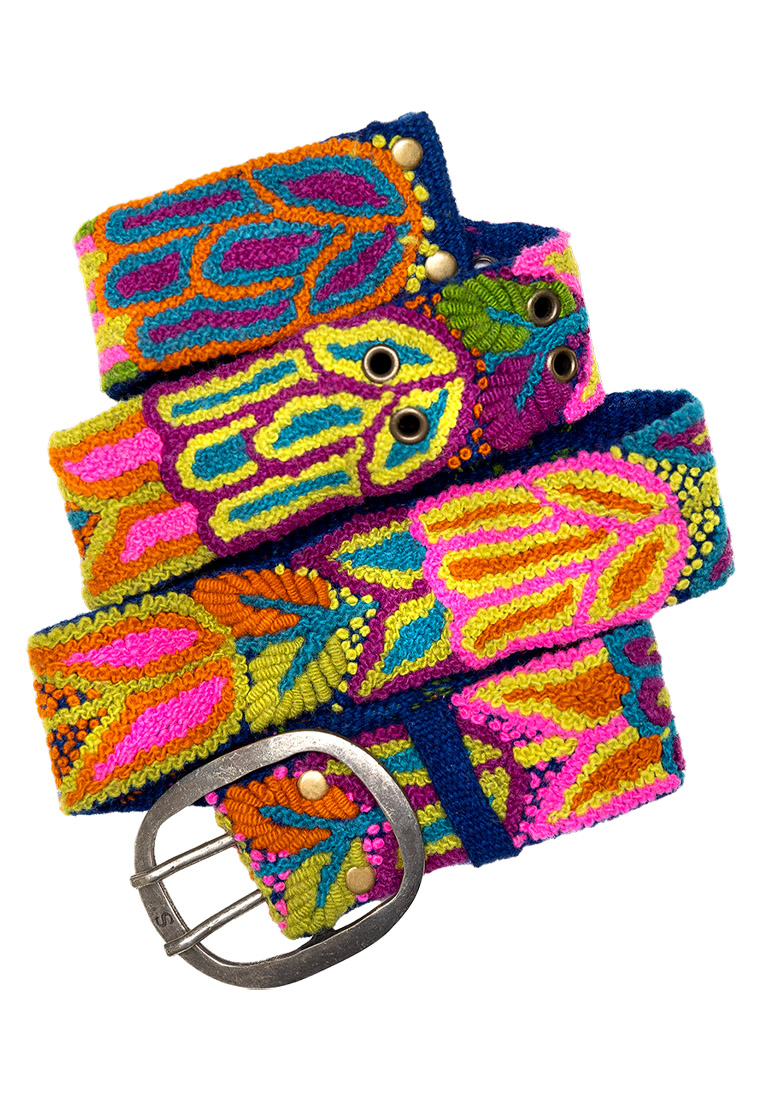 Ein royales blau als Untergrundton und tolle Farben machen diesen Gürtel aus unserer klassischen Florcita Serie zu einem vielseitigen Accessoire. Handarbeit aus Peru.