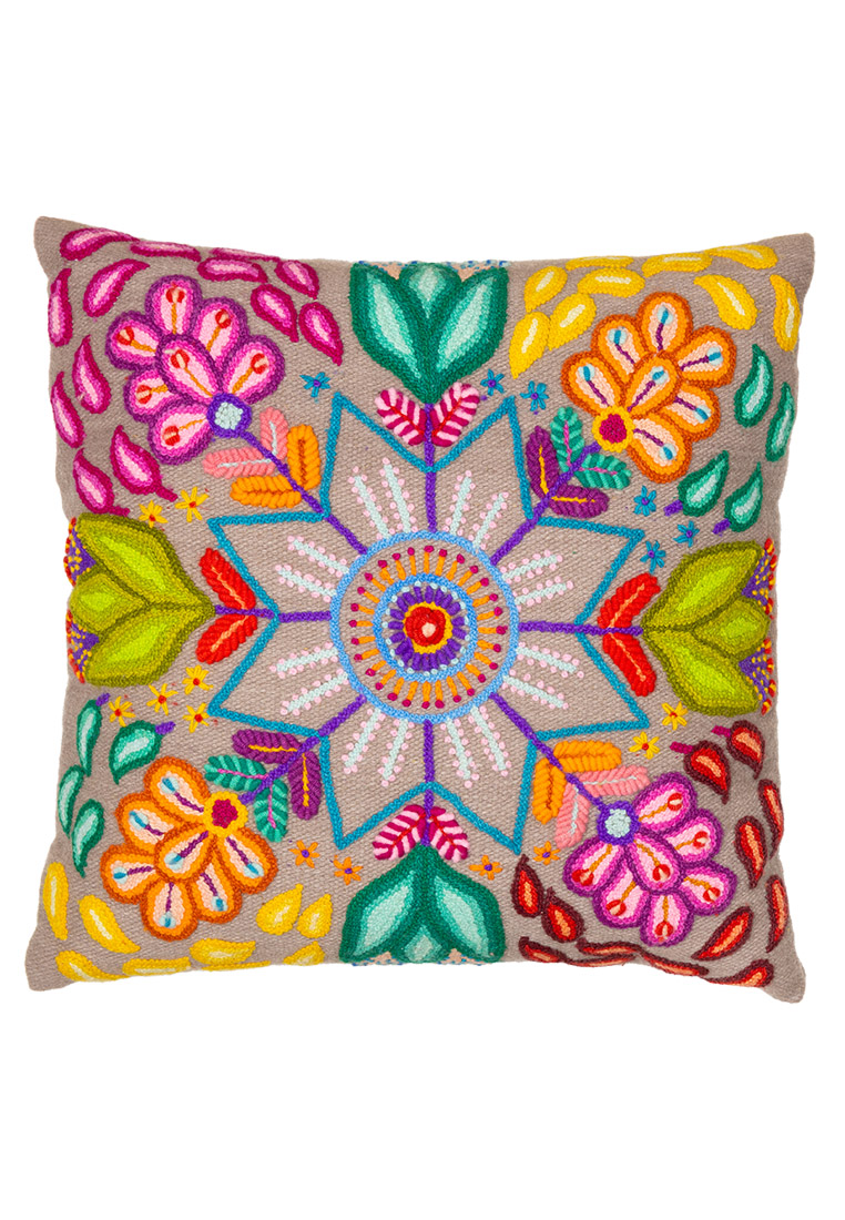 Greta Kissen - Das Kissen erinnert ein bisschen an Ähren und Erntedankfest und ist ein wunderschöner Hingucker in jedem Raum mit viel Liebe zum Detail von Hand bestickt aus Peru.