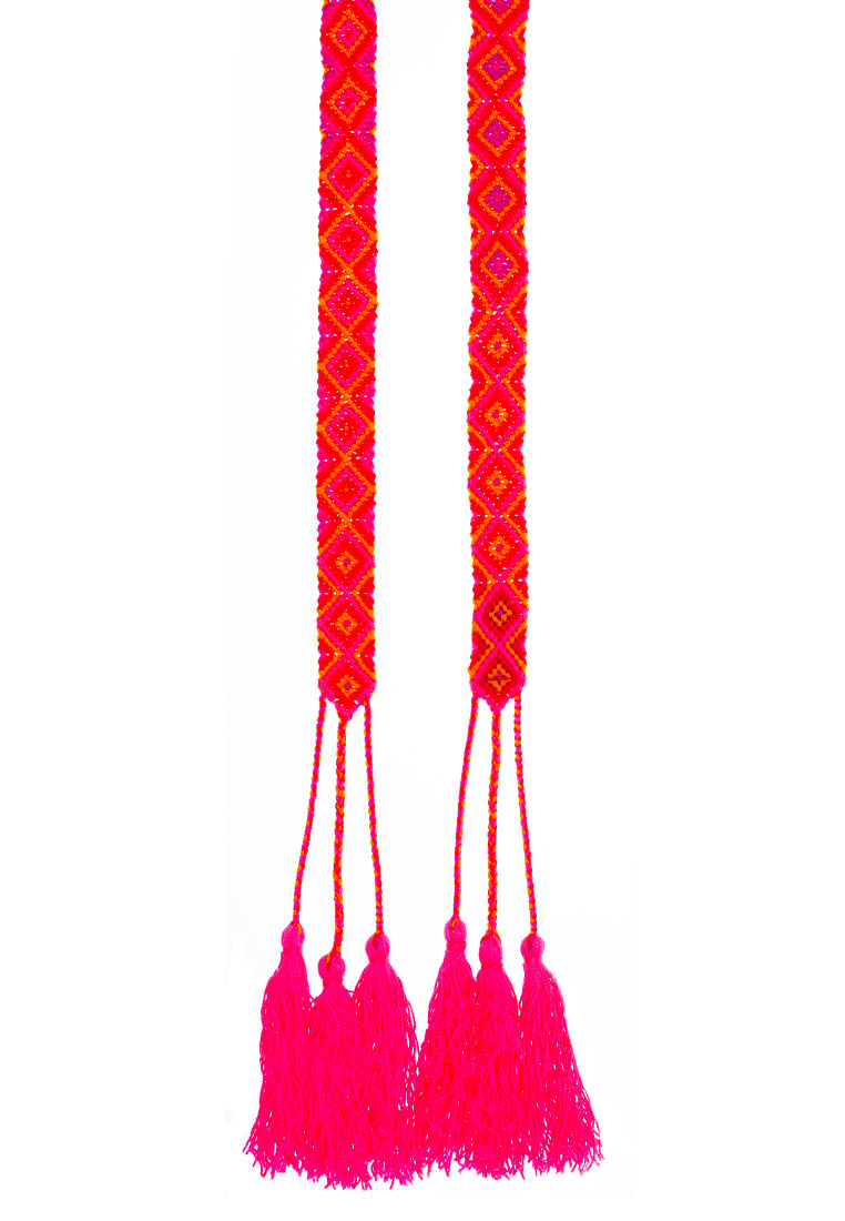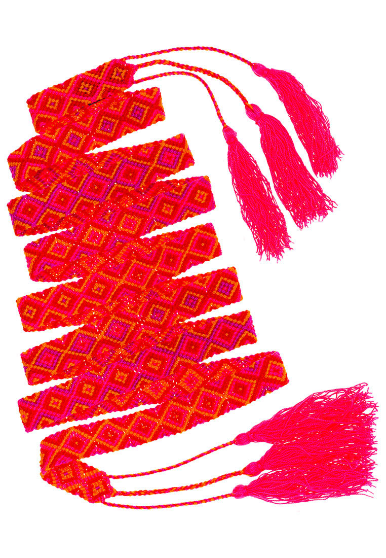 Die geknoteten Gürtel kommen aus Peru und werden in der traditionellen Knotentechnik von Hand produziert. Einzelne Farbfäden, bis zu 12 m lang, werden akribisch zu wunderschönen geometrischen Mustern geknotet. Wir arbeiten mit Frauengruppen aus den indigenen Völkern in den Anden zusammen, die einen verlässlichen und fairen Lohn erhalten, mit dem sie einen Beitrag zum Familienunterhalt leisten können.